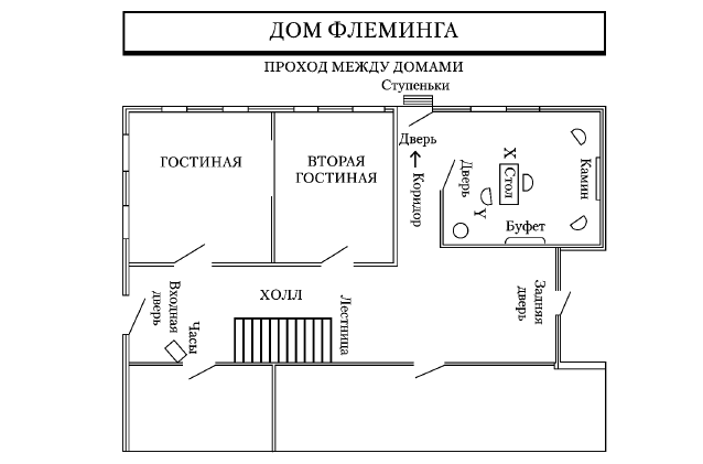 Вы узнаете, что мистер Рэндольф Флеминг, сосед мистера Хьюма, разделяющий его увлечение стрельбой из лука, живет в доме по другую сторону узкой бетонной дорожки, на которую выходят окна комнаты. Дайер исполнил приказ и надежно запер ставни на щеколды. Стоит упомянуть о том, что два подъемных окна также были закрыты изнутри. Осмотрев комнату и убедившись, что все в порядке, Дайер заглянул в буфет, где обнаружил хрустальный графин, полный виски, сифон с