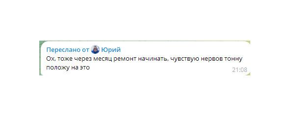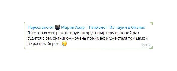 P.S. А что сподвигло написать эту книгу именно сейчас, кроме того, что я это делаю во время своего ремонта? Оказалось, это очень актуально для 10% моих подписчиков в Телеграм! Когда я проводил эфир в зуме для членов клуба Михаила Нимеца, во время разбора предложил написать книгу как одну из идей для продвижения личного бренда. И просто рассказал об этом в сторис телеграм — мол, вот, появилась такая мысль… Мне насыпались такие отзывы, меньше, чем за сутки, так что я понял — пора! Или сейчас, или никогда. (Второй раз я ремонт пока что делать не планирую… Хотя, сам перечитав книгу, уже четко понимаю — морально готов!)