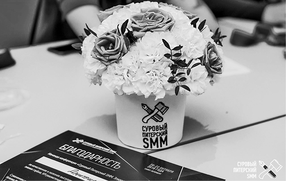 Можно запартнериться с цветочным проектом или просто купить букеты. Еще можно подумать на шаг вперед и задаться вопросом: где спикер будет хранить этот букет, не дарите ли вы человеку немного хлопот, вместо того чтобы позаботиться?