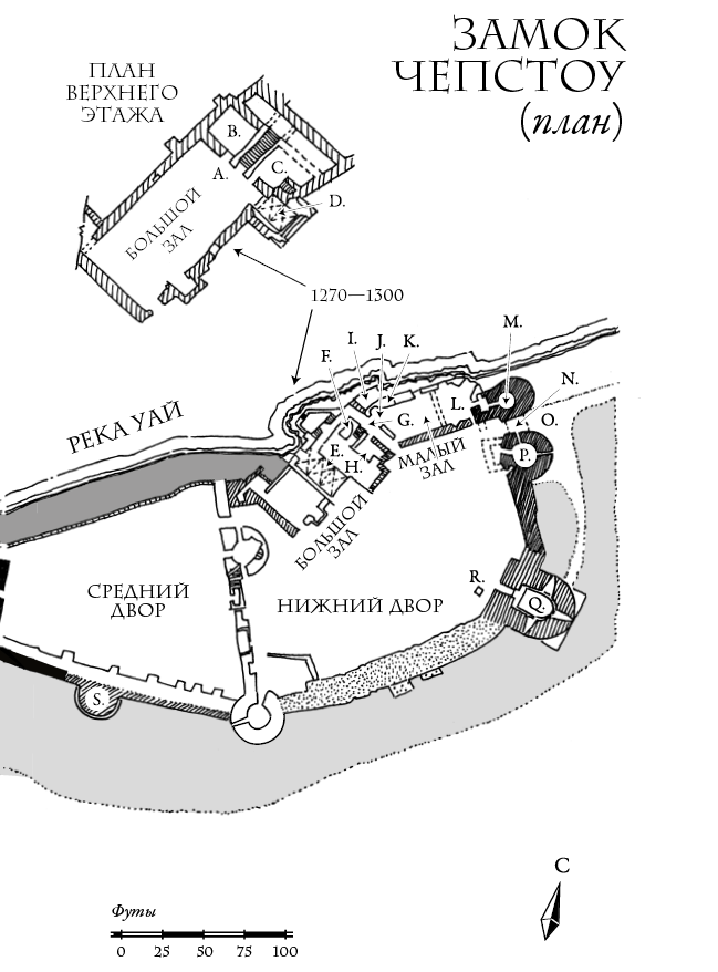 К северу от современного подвесного моста через Северн, в Монмутшире, близ границы с Уэльсом, возвышается замок Чепстоу. Он стоит на вытянутом и узком холме, господствующем над рекой Уай, широкой и мелкой: вместе с Северном, подверженным действию приливов, она ежедневно превращается из судоходной реки в грязную низменность.