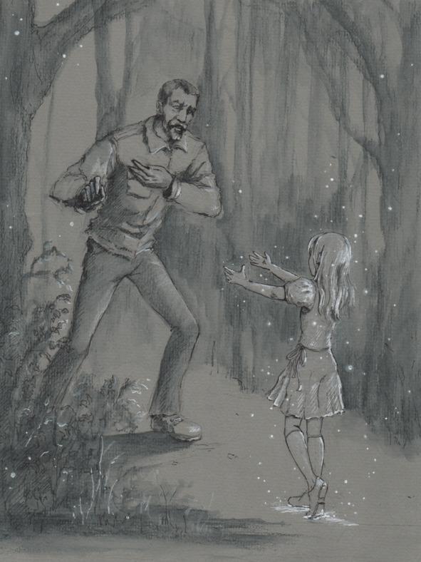 Девочка молчала. Старик начал было все списывать на сумасшедшую голову, которой мерещатся покойники, как вдруг малышка протянула вперед руки. Тарас Петрович был в ужасе. Никогда еще он не испытывал ничего подобного. Поймав себя на мысли, что он боится ребёнка, он встрепенулся и сделал решительный шаг вперед. Протянул руки в ответ, чтобы обнять её. Но как только он попытался прикоснулся к ней, его руки почувствовали обжигающий холод, а девочка будто растворилась под его ладонями, рассыпавшись на маленькие яркие огоньки. Через мгновение образ девочки возник в нескольких метрах от старика. Она смеялась.
