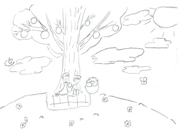 Они остановились в роще. Змей наелся яблок, и Андрей положил несколько штук в заплечный мешок.