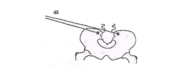 Первая (рис. 1) — парная точка 45, расположена на гребне подвздошной кости в области крестца в месте прикрепления ахиллова сухожилия.