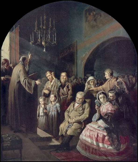 — Тогда он вспомнил другую свою картину. Вот эту, посмотри. Она называется «Проповедь в селе».