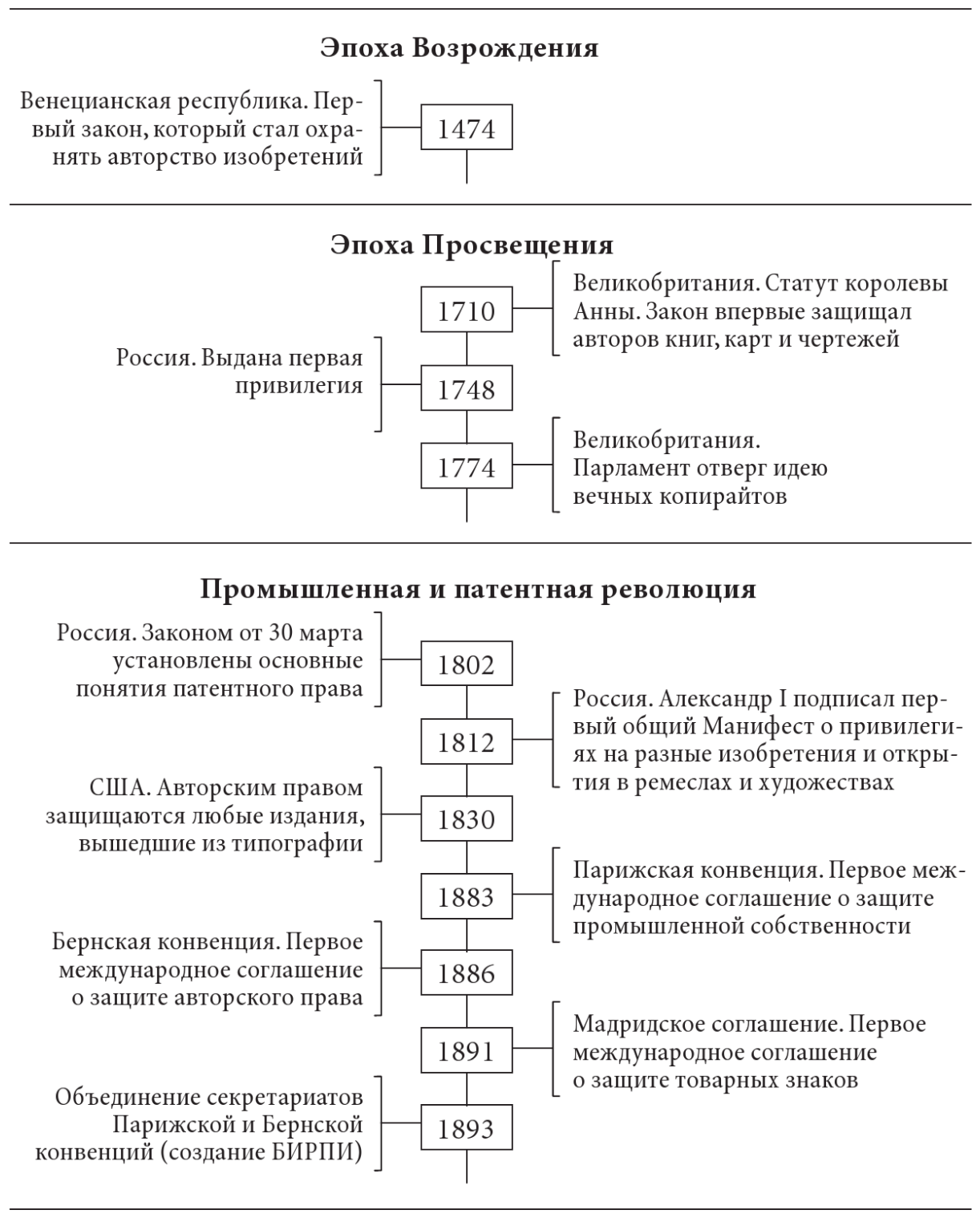 Этапы развития защиты авторского права и промышленной собственности в России и в мире