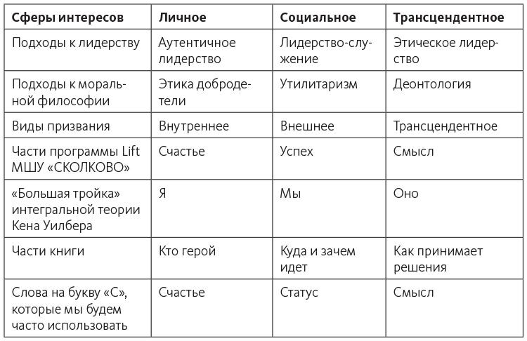 Почему именно эти три сферы? По поводу первых двух пунктов у нас сомнений нет: все психологи и антропологи согласны, что это важно для всех людей без исключения. По поводу третьей части в психологии нет особого консенсуса, но мы уверены: это важно. Кроме того, у нас есть хорошие доказательства из области философии и практики менеджмента. Именно в этих трех сферах применяются три самых популярных подхода в исследованиях по лидерству. Это также три самых распространенных способа в аргументации в этике и философии морали. Сейчас мы будем писать про науку и философию, и вам, читатели, может быть немного сложно. Причина, почему мы об этом пишем: на этом будет базироваться логика всей книги. И мы убеждены, что вам будет важно это понимать, чтобы осмысленно двигаться по книге дальше.