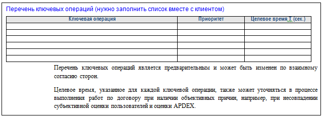 Подробнее о понятии ключевой операции и интегральной характеристике APDEX см. главу «Теория», разделы 3.1.Ключевые операции и 3.2.Методика APDEX.