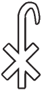 Верхняя часть креста загнута, образуя символ пастушьего посоха. Нижняя часть посоха пересекает букву «Х» – заглавную букву имени Спасителя.