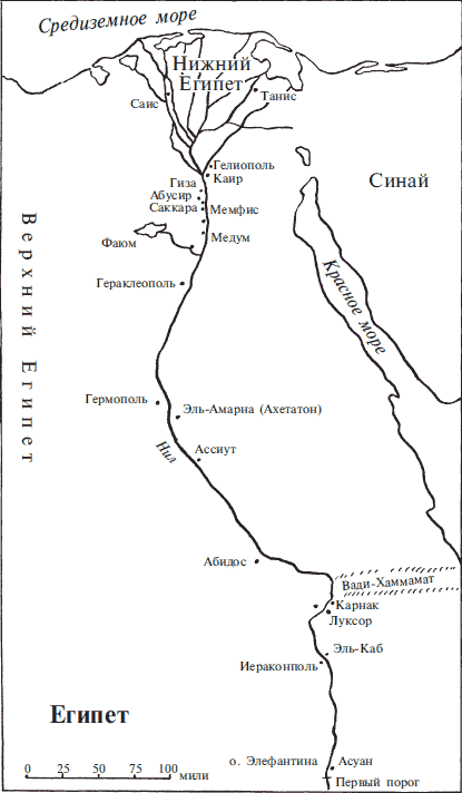 Верхний Египет – это фантастическая страна в 500 миль длины и примерно в 5 миль ширины. По обоим берегам Нила идет узкая полоса плодородного чернозема, окаймленная песками и крутыми уступами пустынного плато, через которое река с незапамятных времен прорезала и углубляла свое русло. Граница между живой и мертвой землей прочерчена резко – можно стоять одной ногой на песке, а другой на зеленеющем поле. Древние египтяне прекрасно сознавали разницу между «черной землей» и бесплодной «красной землей», и эти два термина часто употреблялись ими. Черная земля была драгоценна, ее берегли. Храмы, дворцы и города строились на бесплодном песке, который лежал между плодородной полосой и скальным барьером, так что не терялось ни дюйма культивированной почвы. Две узкие ленты черной земли по обоим берегам реки всегда кормили непропорционально большое население, если принять в расчет размеры обрабатываемой площади. Это было возможно благодаря неиссякаемому плодородию почвы, возникшему в результате уникального явления – ежегодного удобрения почв при разливе реки. Другие реки тоже выполняют эту работу, но никогда с такой регулярностью, как Нил; разлив Нила настолько предсказуем, что древние египтяне назвали наводнением один из сезонов года, ибо в течение этих месяцев земля находится под водой, впитывая питательные вещества, которые река несет на север.