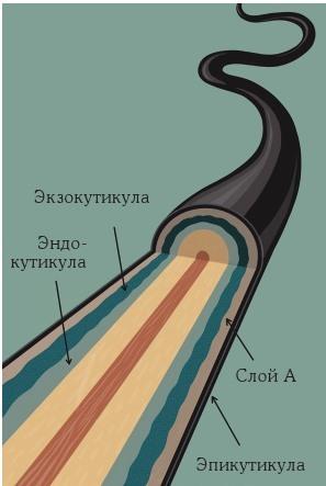 Как было сказано выше, стержень волоса имеет три слоя (рис. 1.1 и 1.2).