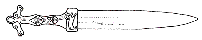 Рис. 1. Луристанский короткий бронзовый меч с соединенными затылками головами буйволов на головке рукоятки. VIII–VII в. до н. э. Длина – 141/2 дюйма. Национальная галерея Виктории.