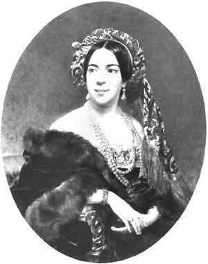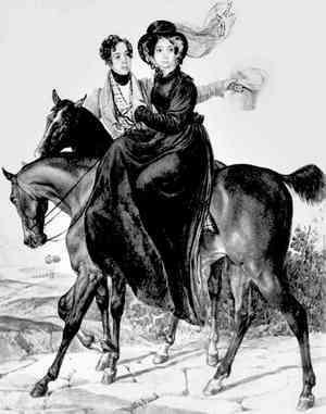 В молодости она, по его словам, имела такое хорошенькое личико, что ее называли «головкой Гвидо» (то есть в духе итальянского художника XVII века Гвидо Рени. – А. И.). Приревновав княжну к более счастливому сопернику, Кириллу Александровичу Нарышкину, Волконский нашел повод придраться к нему без всякой причины и вызвал на дуэль. Но, как пишет он в своих воспоминаниях, «мой антагонист мне поклялся, что не ищет руки моей дульцинеи, и год спустя на ней женился». В 1827 году Карл Брюллов на превосходном акварельном портрете запечатлел супругов Нарышкиных во время конной прогулки в окрестностях Рима.