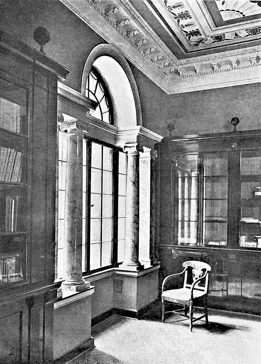 Библиотека в доме Г. А. Черткова. Фрагмент отделки. Фото 1915 г.