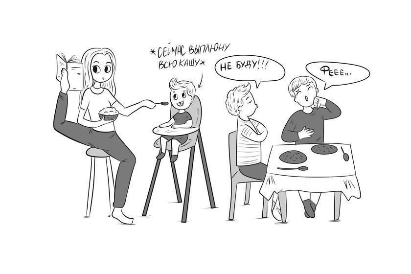 Как это, иметь троих мальчишек? Фактически это значит, что просто не хватает рук. А еще не знаю, как другие дети, но мои очень громкие. Они кричат, когда играют, потом они кричат потому, что не поделили что-то и подрались. Дальше прихожу я и говорю: «Мне все равно, кто это начал, но я это закончу!» В ответ на это они тоже кричат. За завтраком орут в три голоса: «Каша горячая! Каша несладкая! Не буду кашу!» Где-то в перерывах левой пяткой (руки-то заняты) листаю профессиональную литературу.