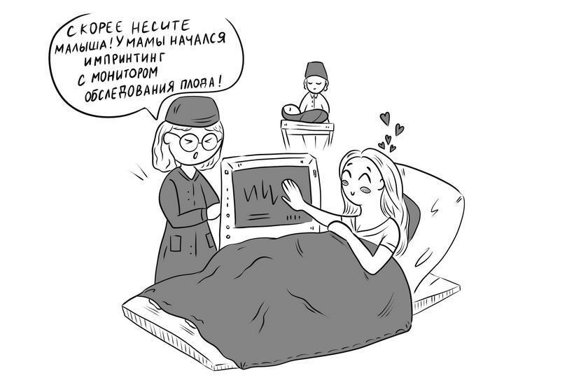 Человеческий младенец не может ползать за тем, что он увидел впервые, однако первый контакт с родителями – «импринтинг» – это жизненно важный для него момент. Малыш после рождения отлично видит на близком расстоянии (если, конечно, ему ничего не закапали в глаза и не мешают бестеневые лампы), чувствует запахи и крайне нуждается в маме. Как только ребенок оказывается на материнской груди, он запоминает маму, а мама «фотографирует» младенца в своей памяти.