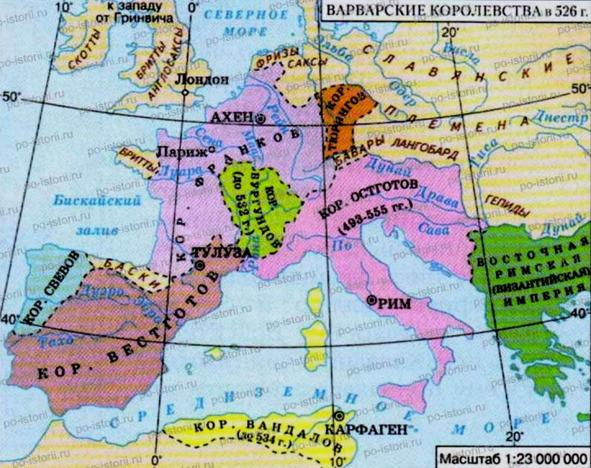 Варварские королевства в VI веке.