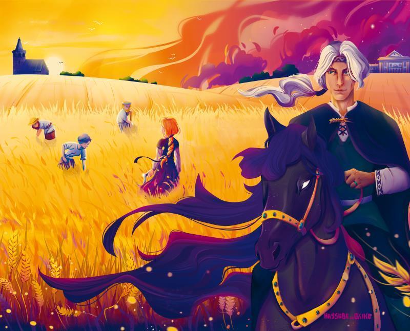 Взгляд пана упал на проезжающего неподалёку от прилавка всадника. Заклинание слетело с уст. В тот миг кобыла с диким ржанием, будто её хлестнула сотня плетей сразу, встала на дыбы, сбросила с седла юношу и помчалась прямо на мельника.