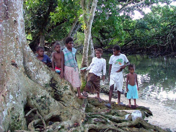 Цивилизация одела островитян, заставила верить и работать. В то же время она отучила их плавать. Я видел купающихся аборигенов лишь на Вануату, здесь лишь женщины, одетые с ног до головы, бредущие с удочками по грудь в воде. Дети просятся на лодку, посмотреть, но идея приплыть к нам на борт их совершенно не привлекает — они не умеют плавать…