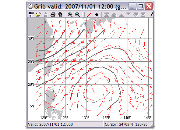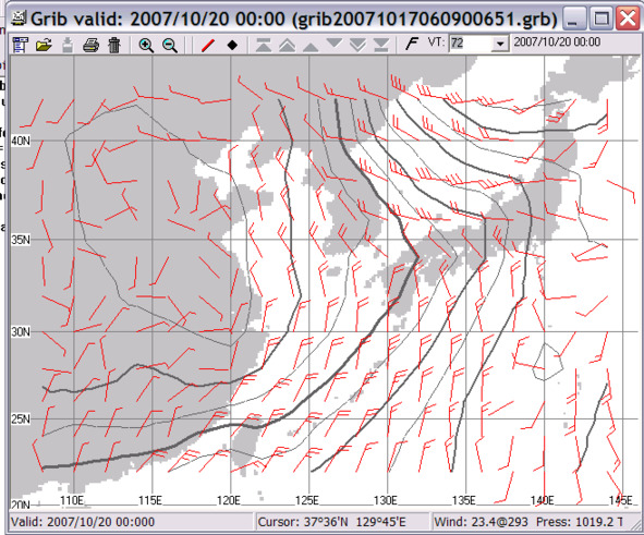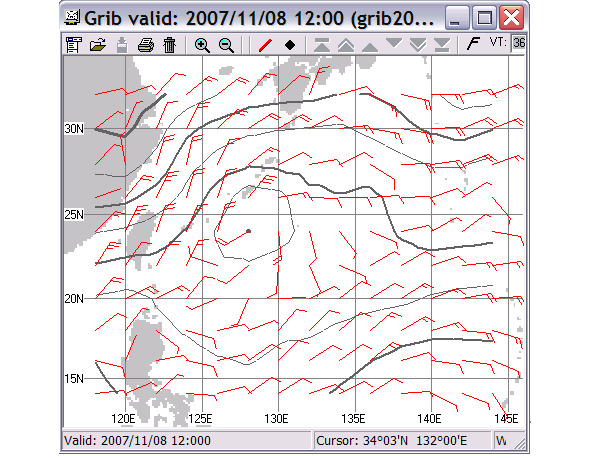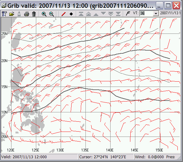 Зимний муссон уже практически сформировался, так что попутных ветров нам должно хватить надолго. Для прогнозирования обстановки используем GRIB -файлы, которые предоставляет система связи winlink. Через нее я сейчас и пишу. Уже в среду, 17 октября, у меня было метео об ухудшении погоды, и выходе приличного циклона на акваторию Японского моря.