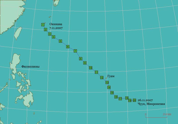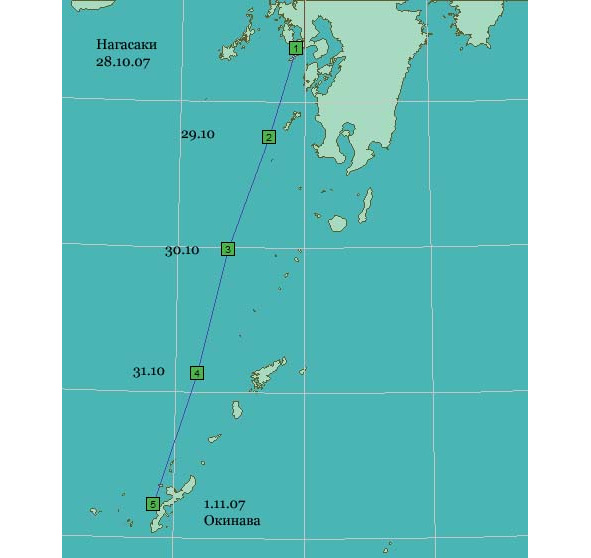 В 2007—2008 мы сходили в Новую Зеландию, посетив Японию, Окинаву, Микронезию, Вануату, Самоа, Тонга и Маршалы.