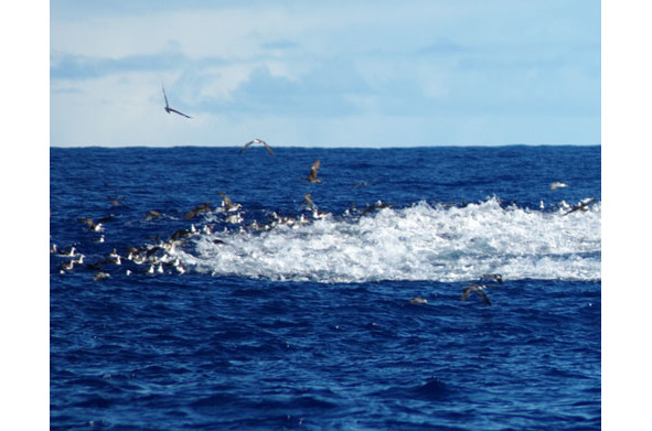Вчера прилетели четыре мелких пичуги, садились на руки, на плечи. Синички, и еще какие-то, типа мухоловок. Похоже, они в море все так себя ведут. До сих пор не навел порядок в каюте, сплю в уголке, возле груды снаряжения.