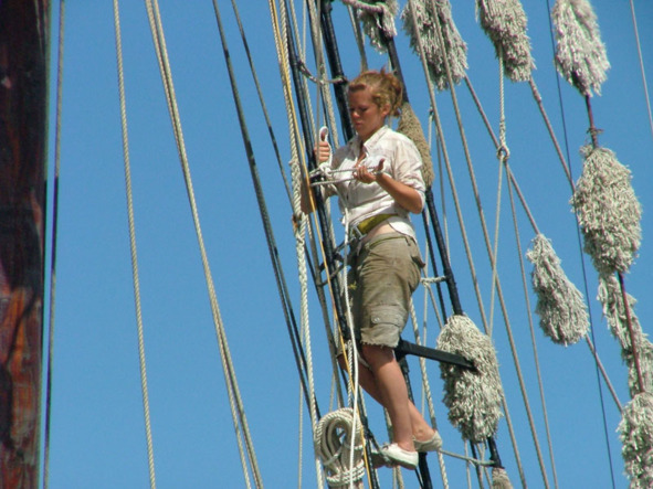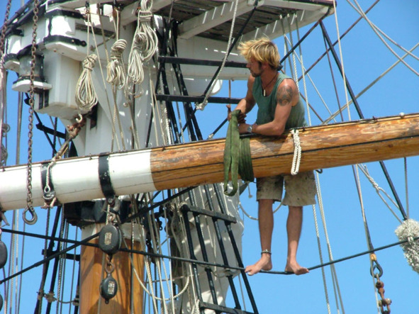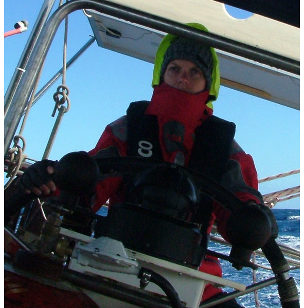 Экипаж находится в работоспособном состоянии, хотя кое-кто заметно укачивается. Вахты стоим классические, 4 (часа) через 8, по двое. Капитану пары не досталось… На палубе работа только в сбруе. Сегодня проводили учения по спасению утопающего, ведро успешно выловили, несмотря на погоду и зеленый цвет.