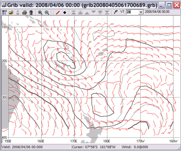 Идти осталось не больше 330 миль, шпарим как перепуганные. За сутки по генеральному 145 миль, а по GPS — 165. До прохода Нанука, которым войдем в море Коро — 140 миль, и по морю Коро до Сувы около 180—190. Правда по прогнозу ветер завтра ослабеет, но лодке, похоже, по барабану.