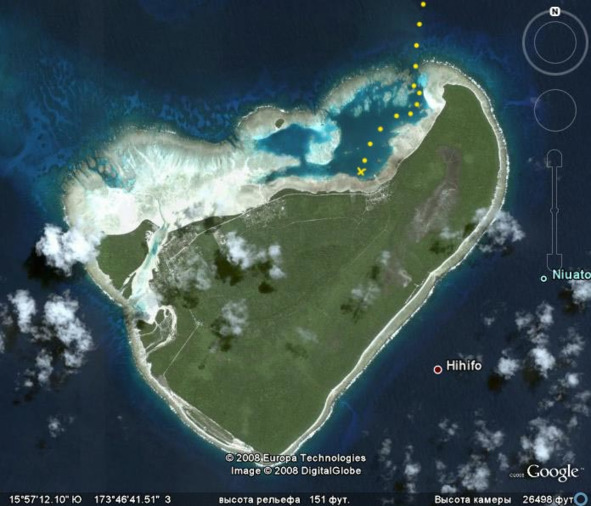 Все в порядке, с Топутапу мы ушли, рано утром снялись с якоря, выбрались по фарватеру из лагуны в открытое море и легли курсом 249 на проход Нануку, в море Коро. Судя по лоции, здесь, по крайней мере, есть маяк. Идем быстро, ветер восточный, до 10мс. Жарко, 30 градусов.
