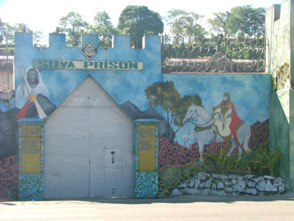 Городская тюрьма рядом с Королевским яхтклубом, раскрашенная лубочными картинками из Библии, бесхитростно и сильно, думаю, самими заключенными.