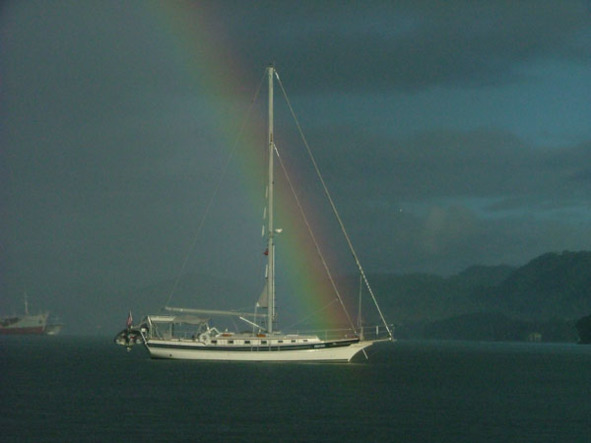 Поскольку стоим на рейде неподалеку от местной тюрьмы, ложимся спать и встаем под тюремную сирену. Очень впечатляет. Мне опять очень повезло с экипажем. Надеюсь, что за следующие полтора месяца удастся полностью излечить остатки самолюбования. Вода у нас здесь 32, а воздух тоже где-то так. Каждый день начинается с ясной солнечной погоды, к вечеру с гор спускаются тучи и начинается дождь, иногда сильный. Идет когда весь вечер, а когда и всю ночь. Уже заготовили дождевой воды для питья везде, где только можно.