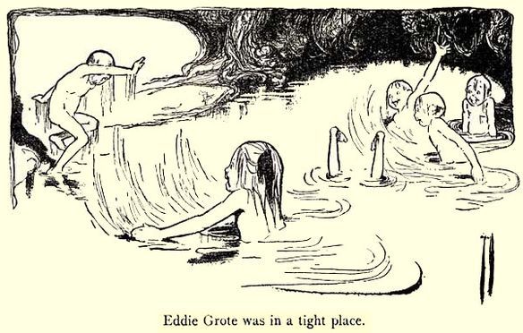 "Oh, Eddie Grote, ain't you ashamed? And before a girl, too! Oh! Oh! Oh!"