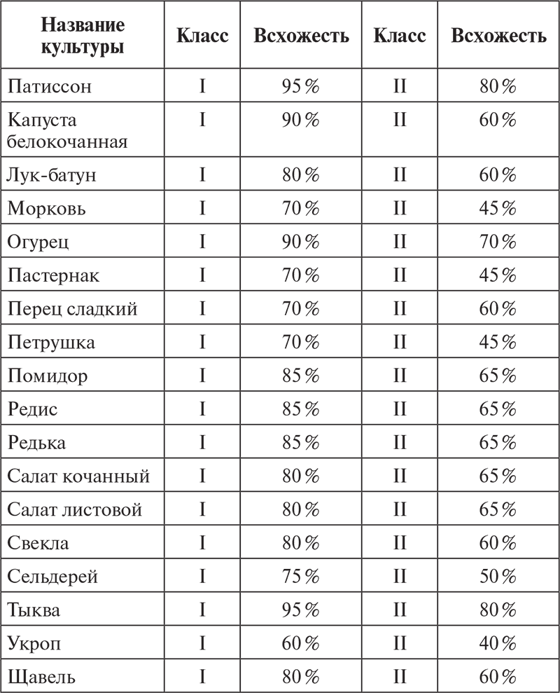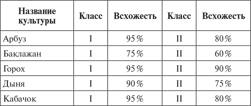 По посевным качествам семена подразделяются на I и II классы (табл. 1).