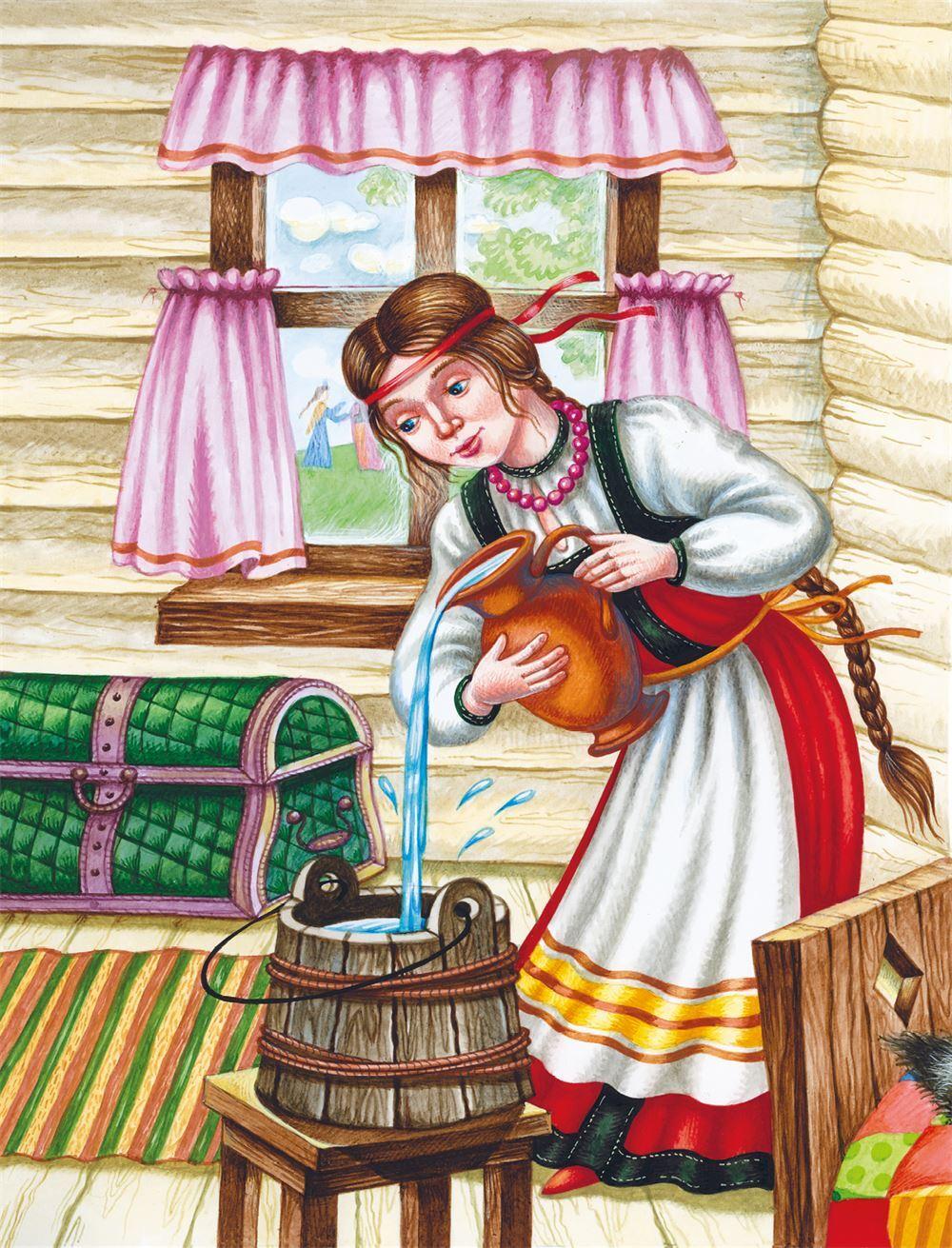 Было у мужика три дочери. Все три красавицы, только младшая чудна́я была какая-то. Старшие дочки любили наряжаться, хороводы водить, с подружками в лес ходить, а младшая всё только работает, за всех одна справляется: что ей ни прикажут, всё делает, никому слова напротив не скажет. За это и прозвали её дурочкой. Кроме как «дура», другого ей имени и не было.