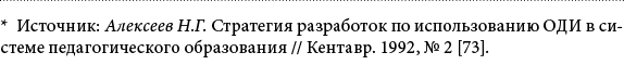 Вкратце разберем смысл отдельных элементов схемы и некоторые ее общие характеристики. Это даст нам возможность понимать общую (методологическую) конструкцию стратегии развертывания разработок по нашему проекту «Использование ОДИ в системе педагогического образования».