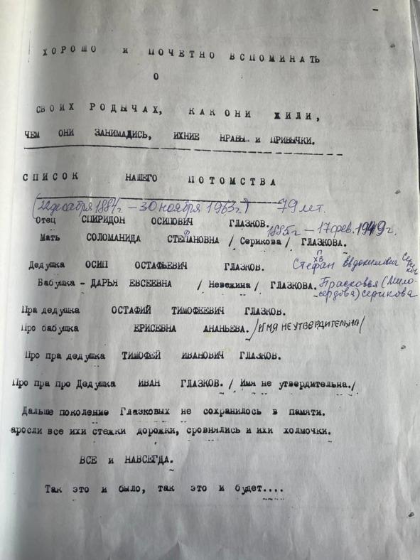 Хорошо и почетно вспоминать о своих родичах, как они жили, чем занимались, ихние нравы и привычки
