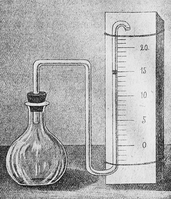 Я уверен, что вы видели ртуть в градусниках. Это – красивая серебристая жидкость. Немцы называют ее жидким серебром. Она очень ядовита. С ней надо обращаться осторожно, и стоит она довольно дорого. Стакан ртути более чем в тринадцать раз тяжелее такого же стакана воды. Поэтому и трубку для измерения давления воздуха надо взять в тринадцать с лишком раз короче, то есть немногим длиннее аршина (1 аршин равен 0,71 м).