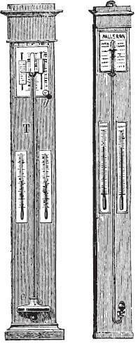 Предположим теперь, что над одним и тем же барометром стоит то более теплый, то более холодный слой воздуха. Хотя толщина этих слоев будет одинакова, но тяжесть их различна; теплый слой легче, и давить на ртуть барометра он будет слабее.