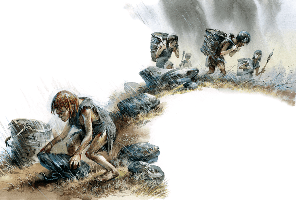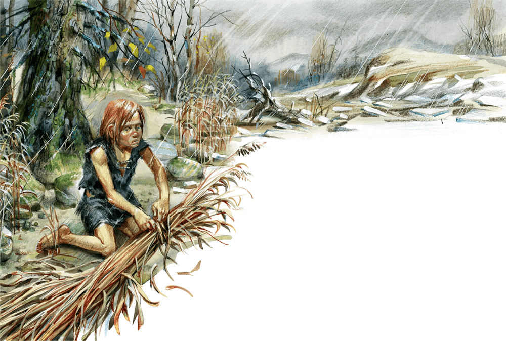 – Дитя, – ответил старик, – все наши ушли ещё до зари в леса на охоту за оленями и широкорогими быками. Они вернутся только к вечеру, потому что – запомни это – дождь смывает следы животных, уничтожает их запах и уносит клочья шерсти, которые они оставляют на ветвях и корявых стволах деревьев. Охотникам придётся много потрудиться, прежде чем они встретят добычу. Значит, до самого вечера мы можем заниматься своими делами. Оставь свой тростник. У нас довольно древков для стрел, но мало каменных наконечников, хороших резцов и ножей: все они обточились, зазубрились и обломались.