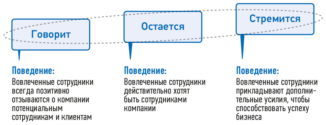 - «вовлеченные» — работают со страстью, чувствуют сильную связь с организацией, упорно трудятся, чтобы обновлять и улучшать компанию;