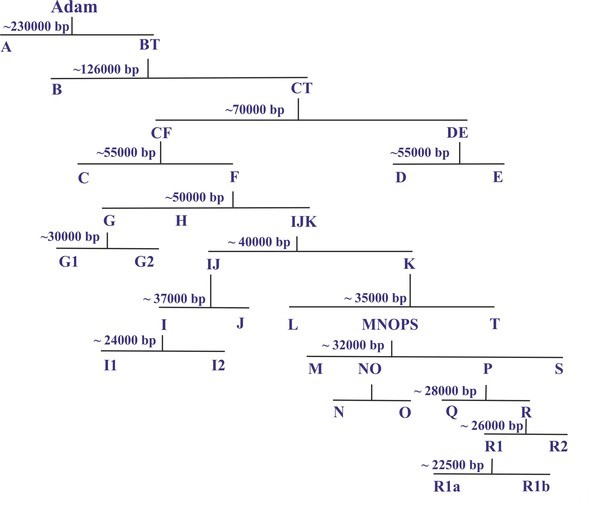 Реконструкция последовательности разделение древних родов по мужской линии, начиная от гипотетического Адама, является одним из наиболее важных результатов исследований ДНК человека. На основании этих данных было построено дерево y-гаплогрупп, которое в упрощенном виде может быть представлено следующим образом [1] [2] (рис.1).