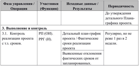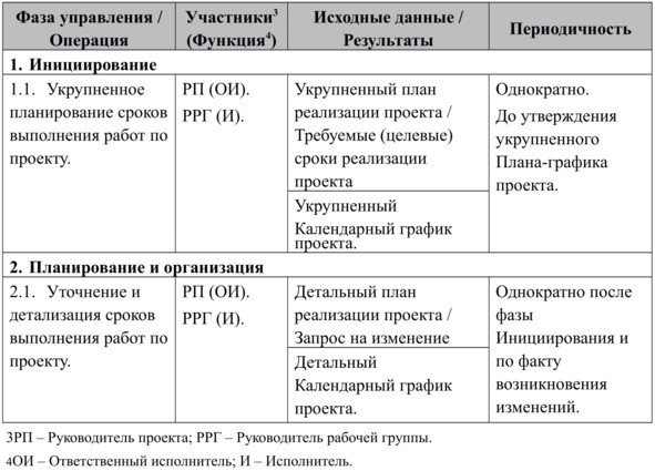 Описание основных операций группы управления сроками проекта (сгруппированные по фазам управления) приводится в Табл. 3.3.