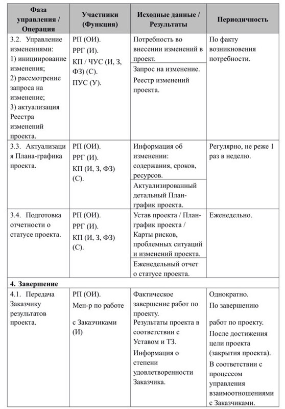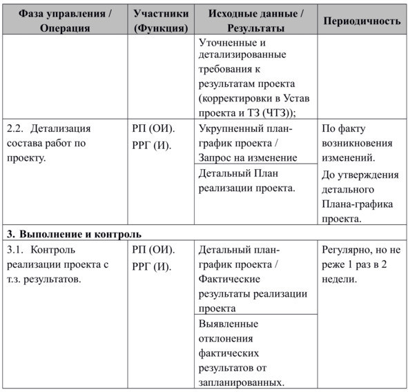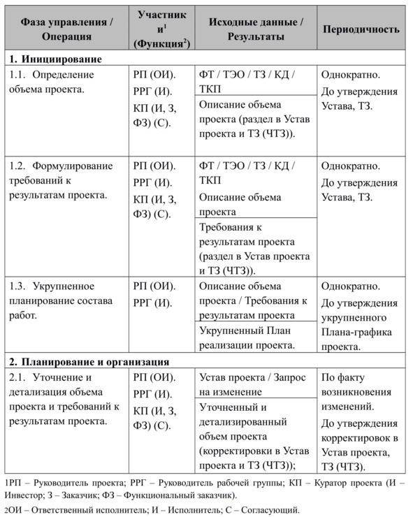 Описание основных операций группы управления содержанием проекта (сгруппированные по фазам управления) приводится в Табл. 3.2.