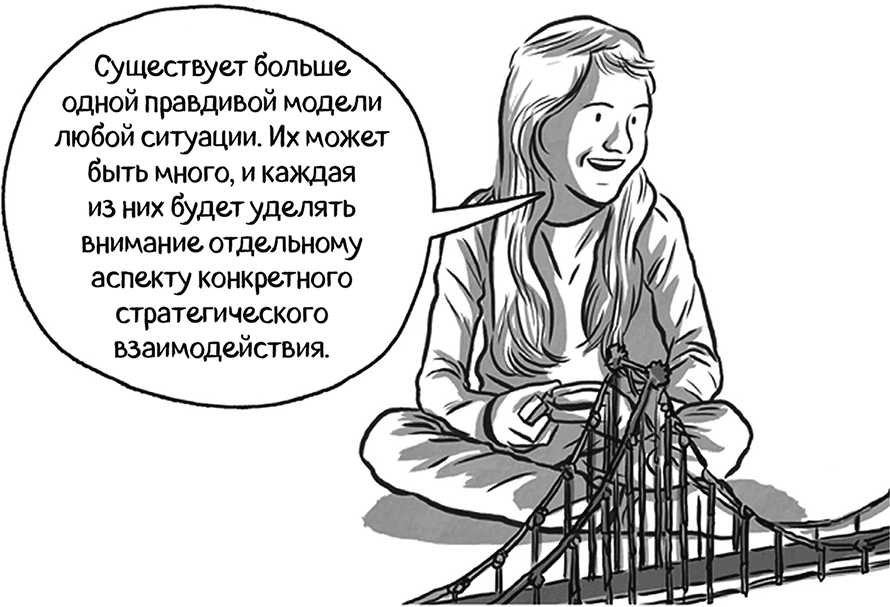 Вне игр стратегическое взаимодействие может быть устроено очень сложно. Взаимодействие между людьми включает, к примеру, не только наши решения, но и выражение лица, тон голоса, язык тела – все это оказывает влияние на других. То, как складываются отношения между людьми, во многом зависит от их личного опыта и точек зрения. Подобное разнообразие способно создавать сложные ситуации, которые с трудом поддаются анализу.