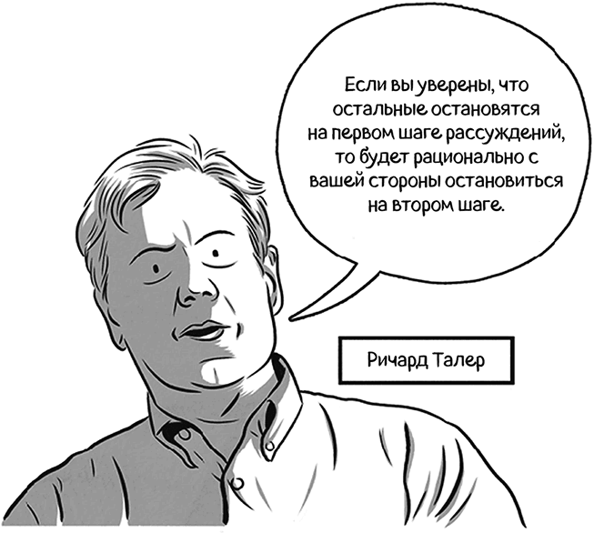Тем не менее если имеет место общеизвестность рациональности игроков, если вы знаете, что остальные не остановятся на первом шаге, то можете бесконечно продолжать такое итеративное рассуждение – процесс логического размышления, который включает повторение одного и того же действия, при котором результат одного этапа берется за отправную точку следующего.