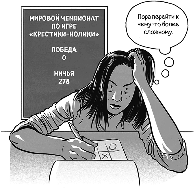 Шахматы – это игра, не поддающаяся доскональному анализу. Поэтому давайте используем упрощенную модель, которая отражала бы некоторые важные детали шахмат: крестики-нолики. Обе эти игры имеют игровые поля и правила. Игроки принимают решения по очереди, выбирая из ограниченного количества возможных ходов.
