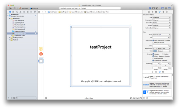 Загрузочный экран указывается не изображение, а xib-файл (рис. 1.5), в котором у нас находится один объект UIKit — View, попозже разберемся что это такое. Какая разница между xib и storyboard, второе используется в версиях iOS 5 и позднее, xib является устаревшим механизмом разработки интерфейса программы, еще одно отличие — это то, что значительно упростилась работа по созданию интерфейса, различие в представление иерархии объектов, также значительно сократилось кол-во строчек xml-кода.