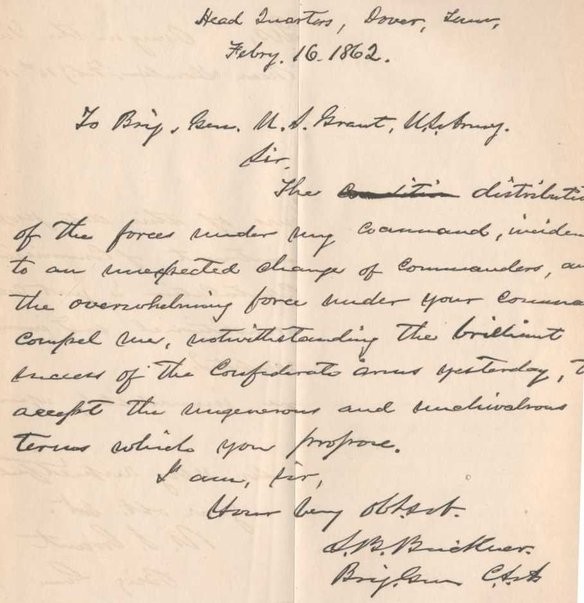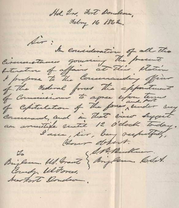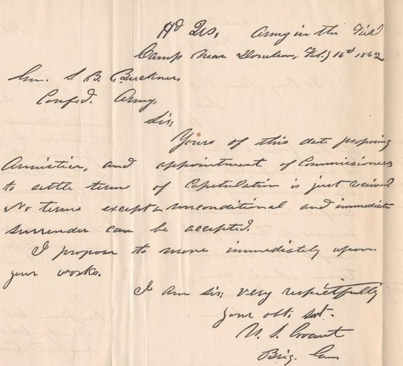 ANSWER ACCEPTING THE TERMS FOR THE SURRENDER OF FORT DONELSON,