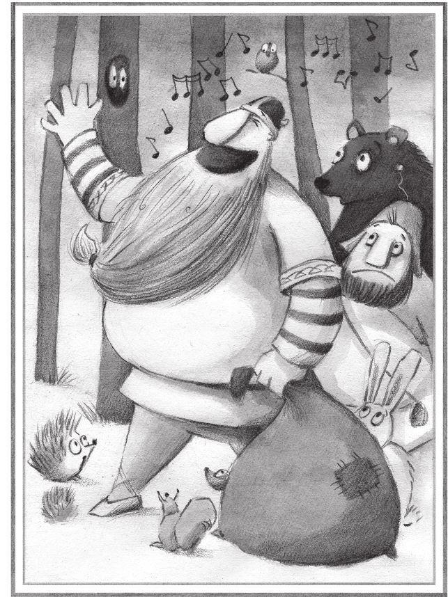 Затем он помчался к своему другу медведю Брюхни, чтобы попросить у него пару горшочков с мёдом. Взамен Таппи пообещал рассказать ему несколько скучных сказок, чтобы медведю легче было впасть в зимнюю спячку. Навестил викинг и других лесных зверей, обитателей Шептолесья, а те охотно поделились с ним своими припасами, потому что знали, что добродушный Таппи сам никогда не оставит их в нужде. К тому же все хорошо помнили, что нет звука громче, чем урчание в огромном Таппином брюхе, и никому не хотелось слушать эти громоподобные раскаты зимой. В итоге довольный викинг притащил в Избушку огромный мешок, полный всяких вкусностей.