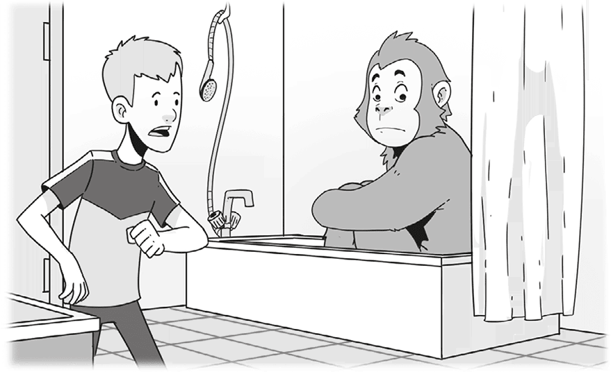 Я вылетел из ванной с максимальной скоростью, которую могли развить мои маленькие призрачные ножки. Проносясь через кухню, предупредил родителей воплем: «МОНСТР! МОНСТР В ВАННОЙ! НЕ ВХОДИТЕ ТУДА!»