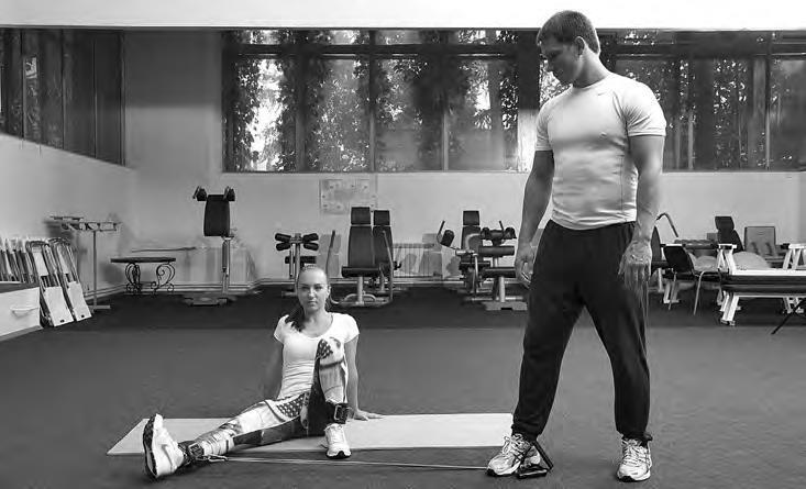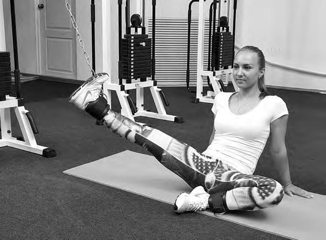 И.П. То же, что и в упражнении Б, только выполняется отведение прямой ноги максимально в сторону. Амортизатор необходимо зафиксировать за неподвижную опору или воспользоваться услугами партнера.